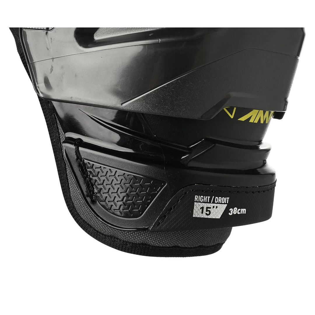 Der Bauer Supreme MACH Beinschutz bietet mit dem XFLEX Shield Schienbeinschutz und dem Curv Composite Wadenschutz optimalen Schutz vor Verletzungen. Das Gelenk ermöglicht einfache Schlittschuhschritte und sorgt für eine bessere Beweglichkeit auf dem Eis. Die ErgoDynamic Kniekappe sorgt für einen tieferen Sitz und schützt das Knie vor Verletzungen. Der Beinschutz ist flexibel und mit HD Schaum gepolstert, um auch hier optimalen Verletzungsvorbeugung zu bieten. Der komfortable Klettverschluss sorgt dafür, dass der Beinschutz sicher am Bein sitzt und nicht verrutscht. Das entfernbare Futter mit vorgeformtem Luftkanal sorgt für ein angenehmes Tragegefühl während des Spiels.