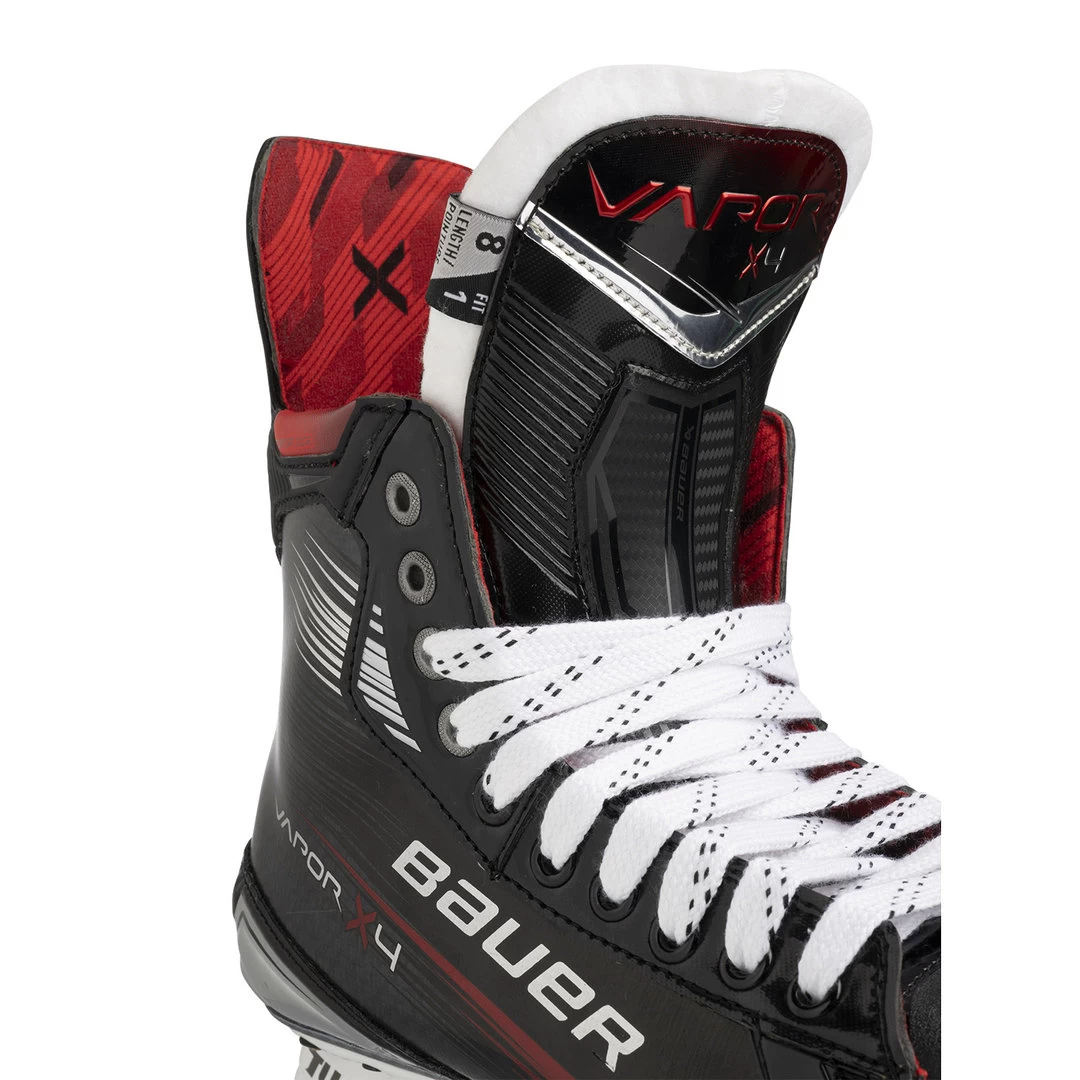 Der Bauer X4 Eishockeyschlittschuh bietet eine bequeme und leichte Passform, die für ein optimales Spielerlebnis sorgt. Dank der weichen Vapor-Sohle und der harten Oberseite können Sie Ihre Energie direkter auf die Kufe übertragen. Die 40-oz Pro Stock-Zunge mit Liner sorgt für zusätzlichen Komfort, während der TUUK LIGHTSPEED Edge Holder Ihnen einen schnelleren und präziseren Anschub ermöglicht. Die asymmetrische Zehenkappe und das Digi Composite Außenmaterial bieten zusätzliche Unterstützung und Komfort. Das Knöchelpolster aus Memory Foam passt sich an den Fuß an und schützt ihn vor Druckstellen. Abschließend sorgt die LS Pulse SS 10FT Kufe für eine verbesserte Griffigkeit und Kontrolle auf dem Eis.