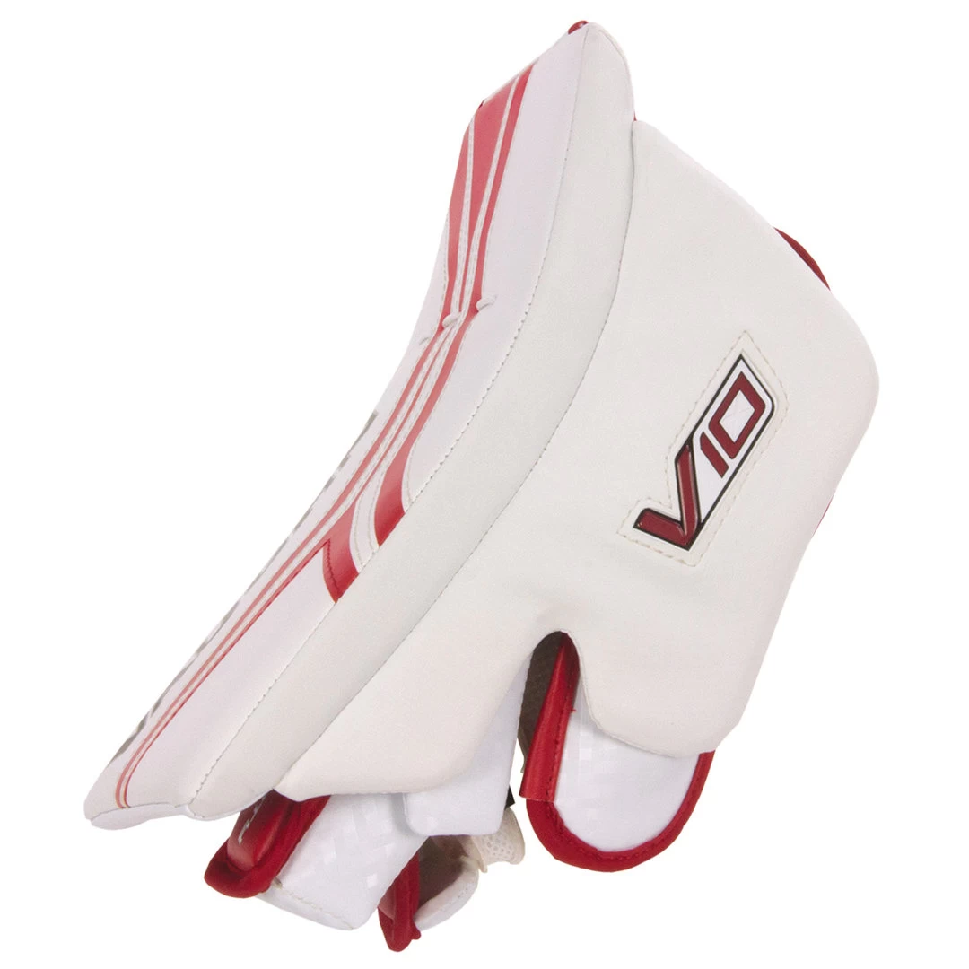 Die neue V10 Velocity Grafik verleiht der VAUGHN Velocity 10 Jr Stockhand ein modernes und dynamisches Aussehen. Die größere Biegung des Blockerboards sorgt für eine bessere Puckablenkung, während der seitliche Fingerschutz und der große seitliche Zeigefingerprotektor für einen optimalen Schutz bei gleichzeitiger Fingerbeweglichkeit sorgen. Die Handfläche ist mit einem neuen Design ausgestattet, das für einen perfekten Fit und mehr Komfort sorgt. Die verwendeten HD Schaumstoffe garantieren einen optimalen Schutz vor Pucks und Schlägern und verbessern gleichzeitig die Performance des Torwarts. Der flexible Handgelenksschutz sorgt für mehr Flexibilität und Beweglichkeit.